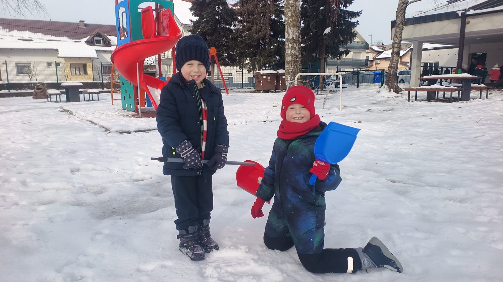 Snijeg je donio veselje i osmijehe u naše dvorište. Ribice su uživale u igri na snijegu i zajedničkom druženju na svježem zraku.