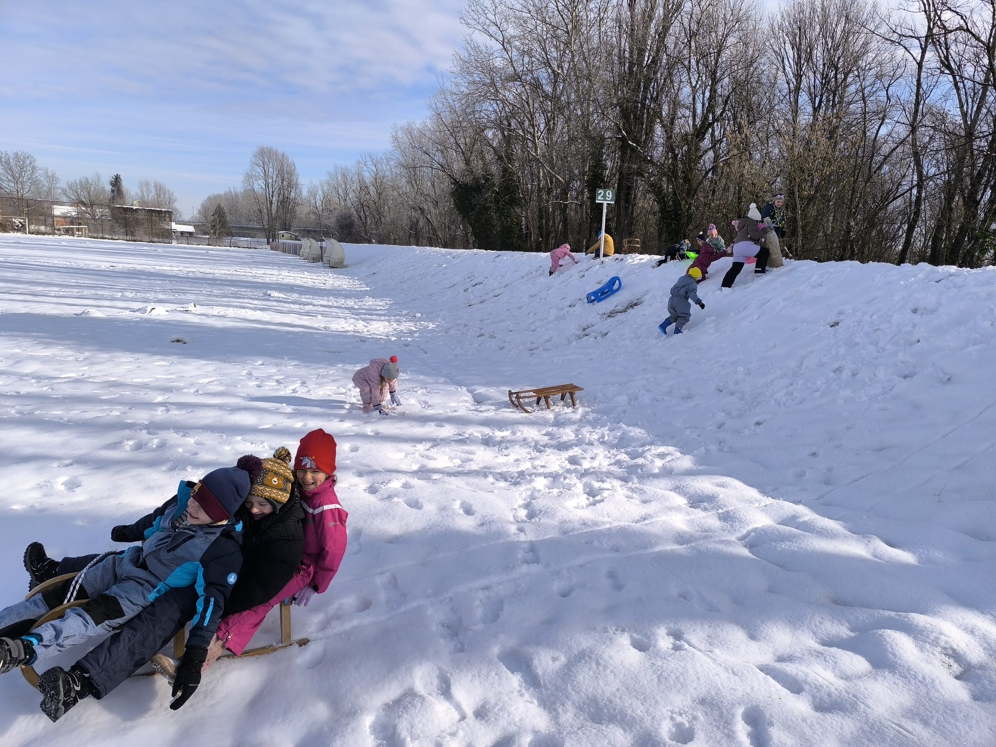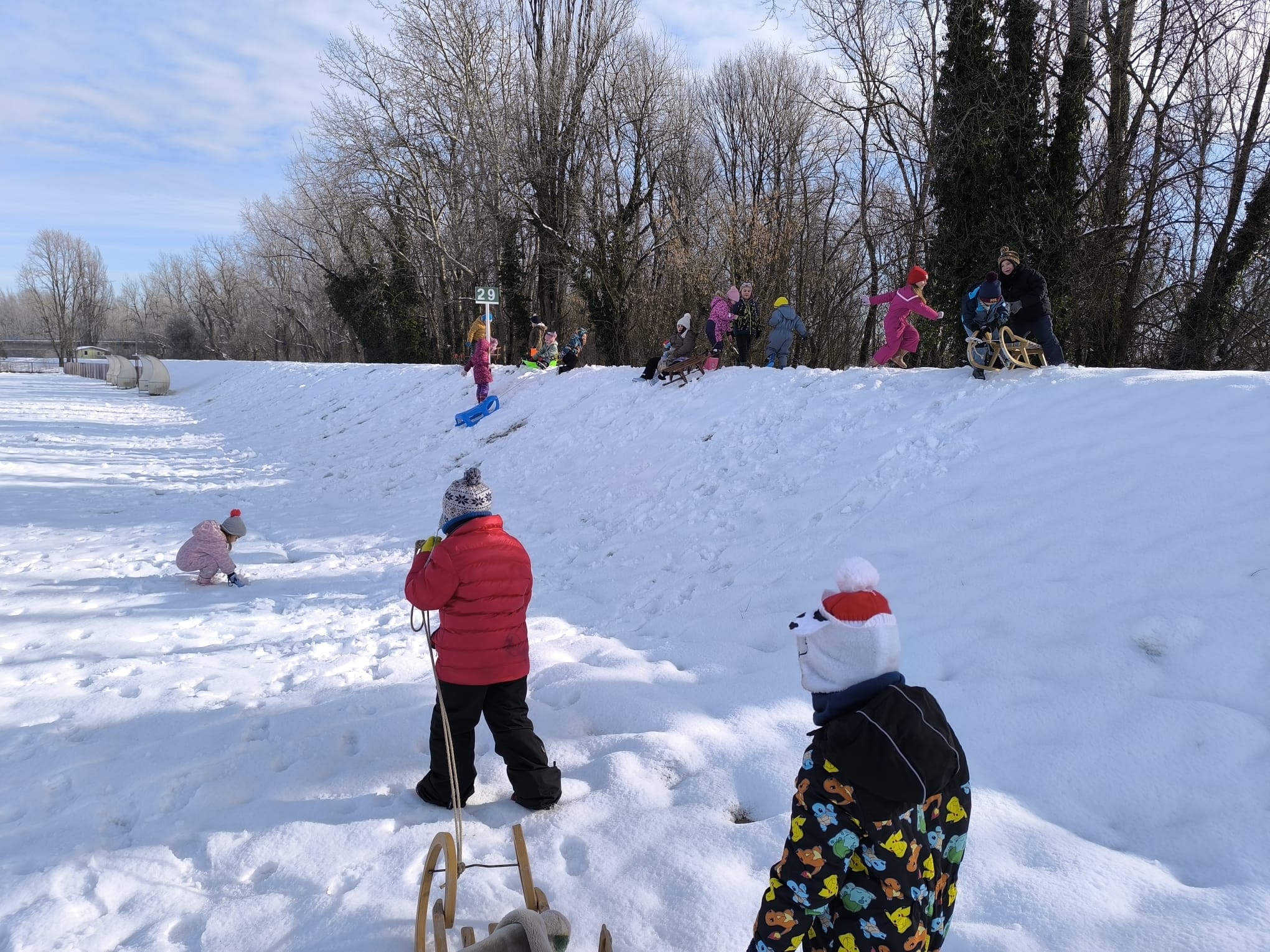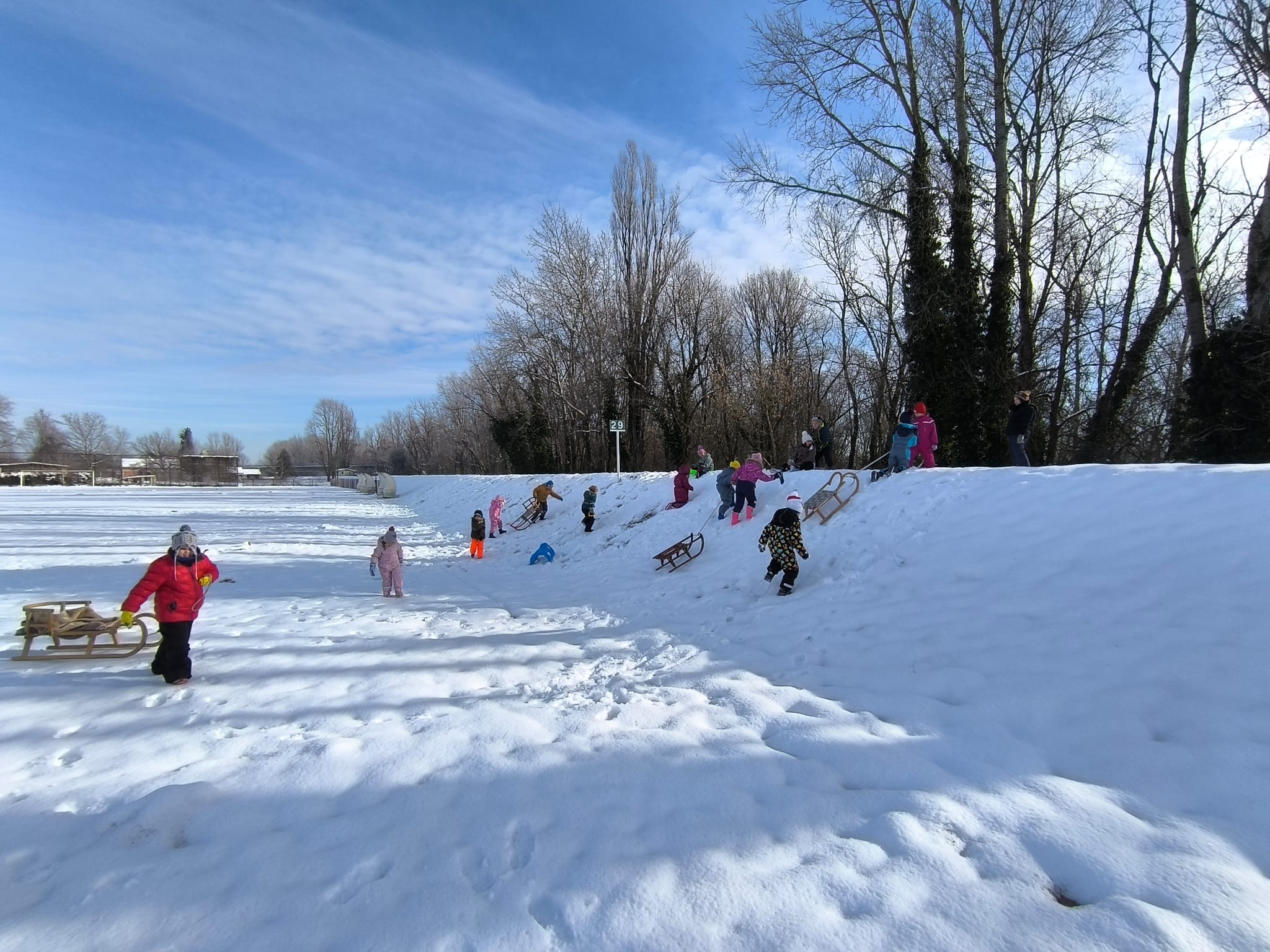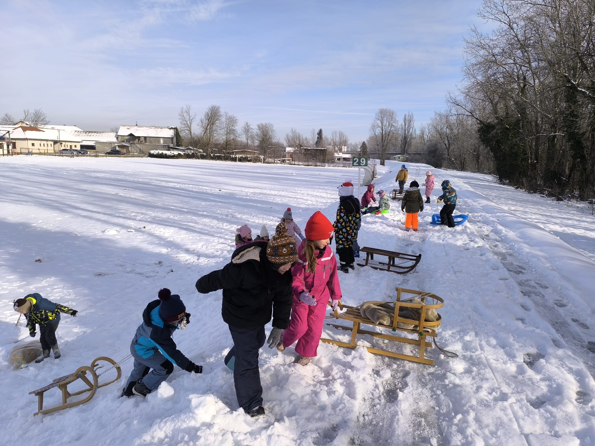 Uz puno smijeha i veselja, odgojna skupina Zvjezdice iz Jasenovca iskoristila snježni pokrivač za odlazak na sanjkanje niz obližnji nasip. Mališani su s oduševljenjem klizili niz blagu padinu i uživali u zimskim radostima. Sanjkanje je proteklo u sigurnom okruženju, uz stalni nadzor odraslih. Djeca su imala priliku boraviti na svježem zraku, razvijati motoričke vještine i jačati timski duh kroz zajedničku igru i druženje. Ovakve aktivnosti su vrlo važne za cjelokupni razvoj djece jer potiču tjelesnu aktivnost, boravak u prirodi i stvaranje lijepih uspomena iz vrtićkih dana.