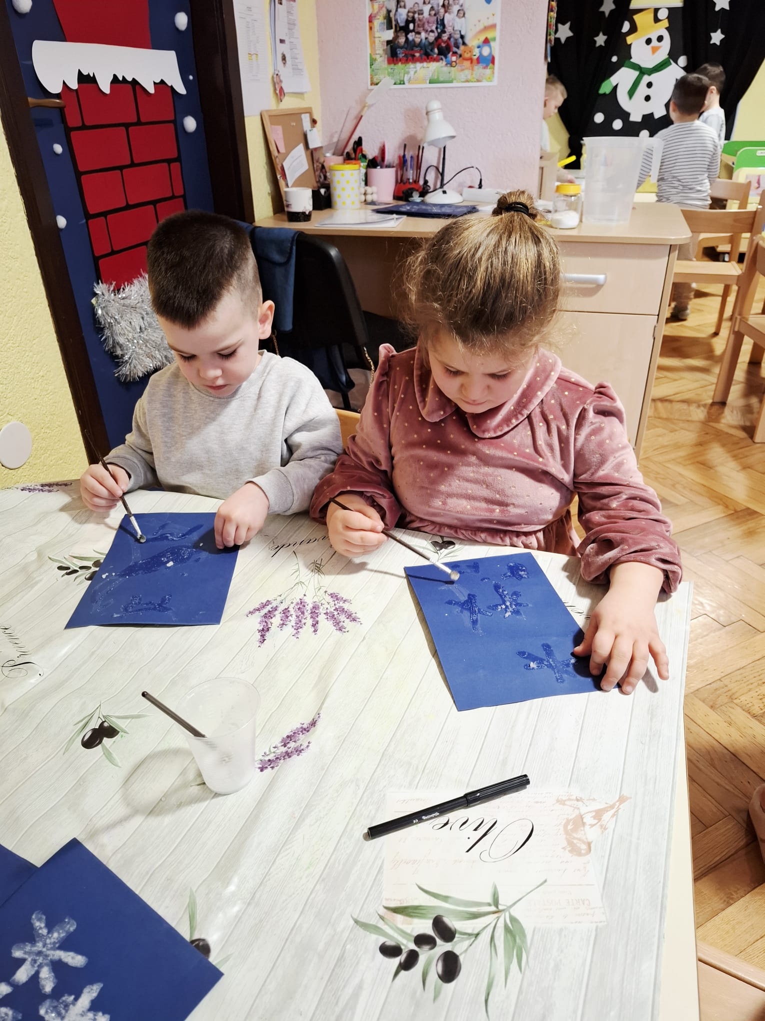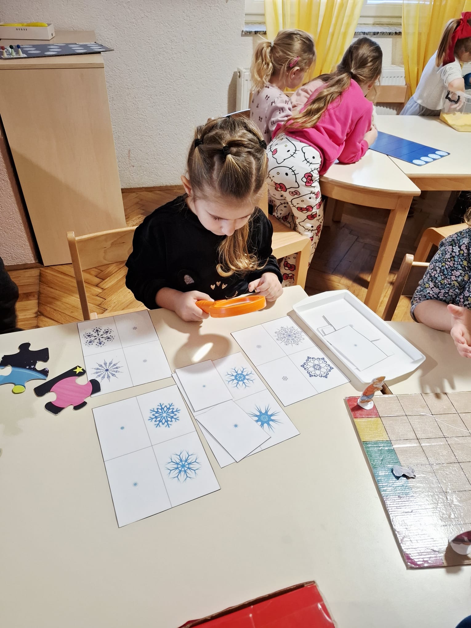 Oduševljenje snijegom, pahuljicama i zimskim aktivnostima djeca iz skupine Bubamare su pokazala kroz razne aktivnosti. Razgovarali smo o hladnoći, snijegu, ledu. Čitali razne priče "Jedan zimski dan", "Snježna priča", "Ježić koji nije spavao zimski san". Naučili smo i koje životinje spavaju zimski san i kako se pripremaju za zimu. Igrali smo društvene igre na temu zime, provodili matematičke aktivnosti, istraživačke i tjelesne, aktivnosti početnog čitanja i pisanja, pjevali razne pjesme.