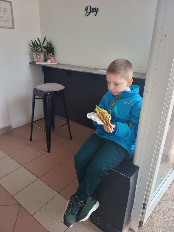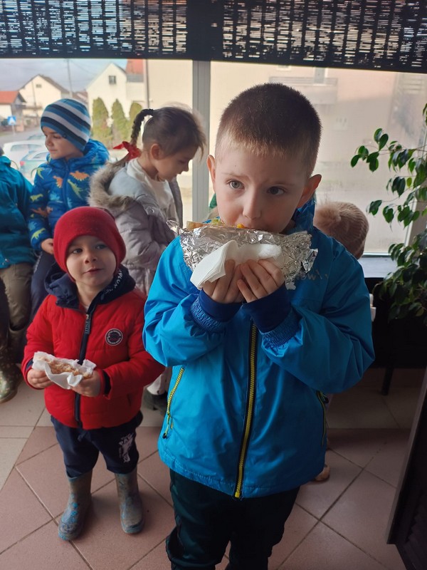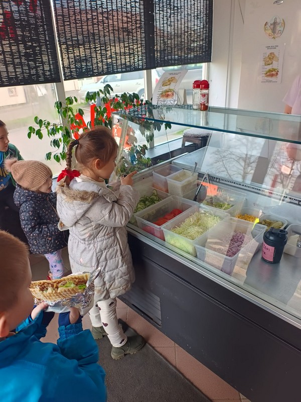 U sklopu naših svakodnevnih aktivnosti i boravka na zraku, djeca su prošetala gradom te uživala u posebnom izletu – zajedničkom odlasku na kebab. Šetnja je bila prilika za ponavljanje pravila sigurnog kretanja u prometu, promatranje gradske okoline i razvoj snalaženja u prostoru. Djeca su s veseljem sudjelovala u odabiru obroka, pristojno naručivala te pokazala lijepo ponašanje u ugostiteljskom objektu. Ovakve aktivnosti potiču razvoj samostalnosti, socijalnih vještina, kulture ponašanja na javnim mjestima te osjećaj zajedništva. Uz puno smijeha i dobrog raspoloženja, izlet je protekao u ugodnoj i veseloj atmosferi, a mališani su se u vrtić vratili puni dojmova.