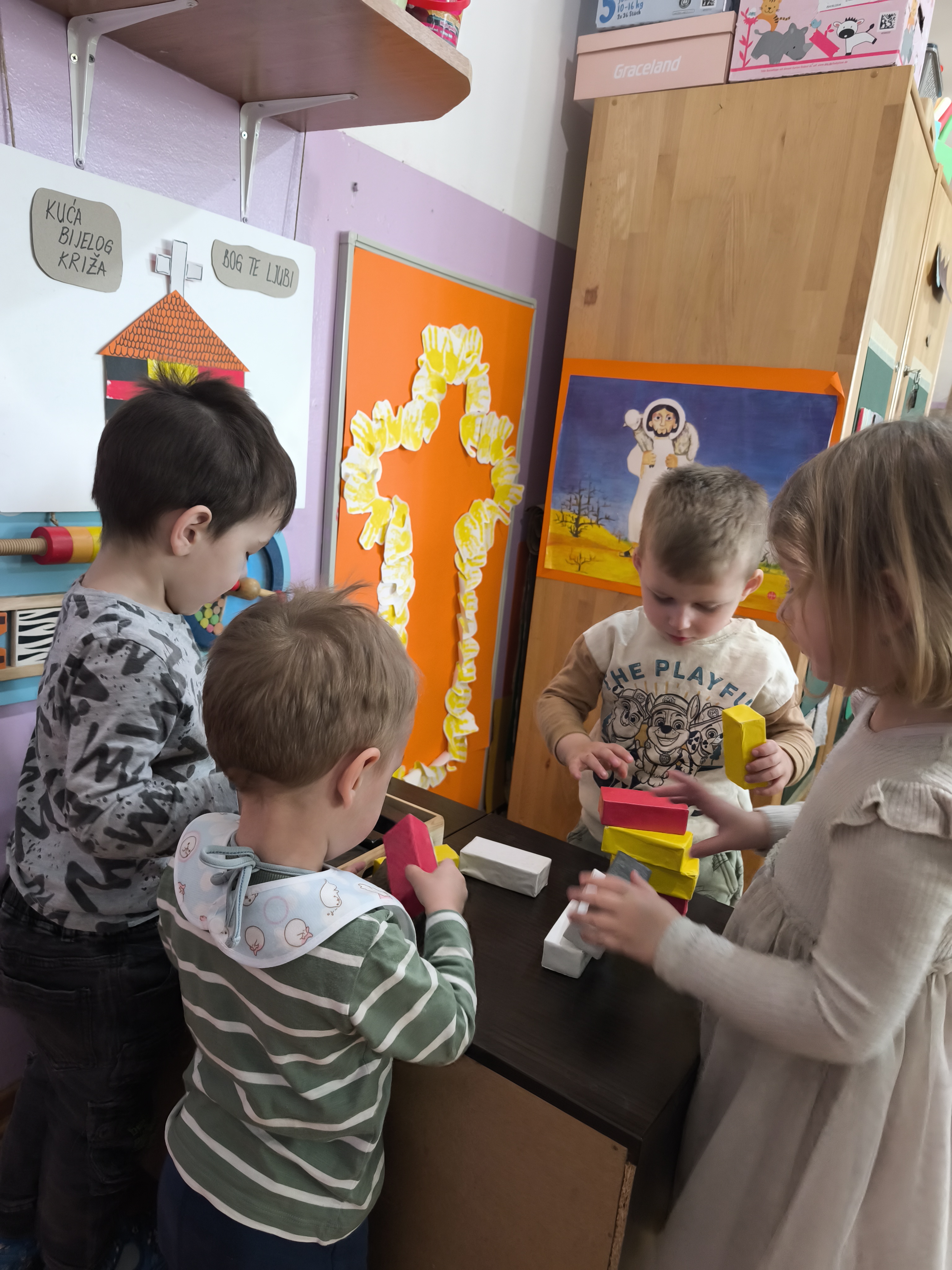 Od 2023. godine u Dječjem vrtiću Radost Novska provodi se Program katoličkog vjerskog odgoja u jednoj odgojnoj skupini, uz prethodnu suglasnost roditelja. Program provodi odgojiteljica Dijana Kadliček odgojiteljica u vjeri. Vjerski odgoj temelji se na vrijednostima ljubavi, dobrote, zajedništva i međusobnog poštovanja. Kroz raznolike i djeci prilagođene aktivnosti – poput pričanja prispodoba, pjevanja, likovnog izražavanja i simboličke igre – djeca se upoznaju s temeljnim kršćanskim vrijednostima na njima blizak i razumljiv način. Integracijom u redoviti odgojno-obrazovni rad, sadržaji vjerskog odgoja prirodno se uklapaju u svakodnevni život skupine, poštujući ritam, potrebe i interese djece. Poseban naglasak stavlja se na razvoj cjelovite osobnosti djeteta, uključujući njegov emocionalni, socijalni i duhovni razvoj. Osnovna zadaća je razvijati i podržavati kod najmlađe djece i roditelja trajne vrijednosti – ljubav, istinu i dobrotu, te poticanje razvijanje religiozne dimenzije djeteta slijedeći vrijednosti Evanđelja. Kroz vjerski odgoj dijete otkriva povezanost svijeta i Boga. Upoznaje sebe, drugoga i svijet oko sebe te raste u vjeri. Raste i razvija se u nadi i povjerenju potičući optimističan pogled na svijet i život u svim njegovim dimenzijama.