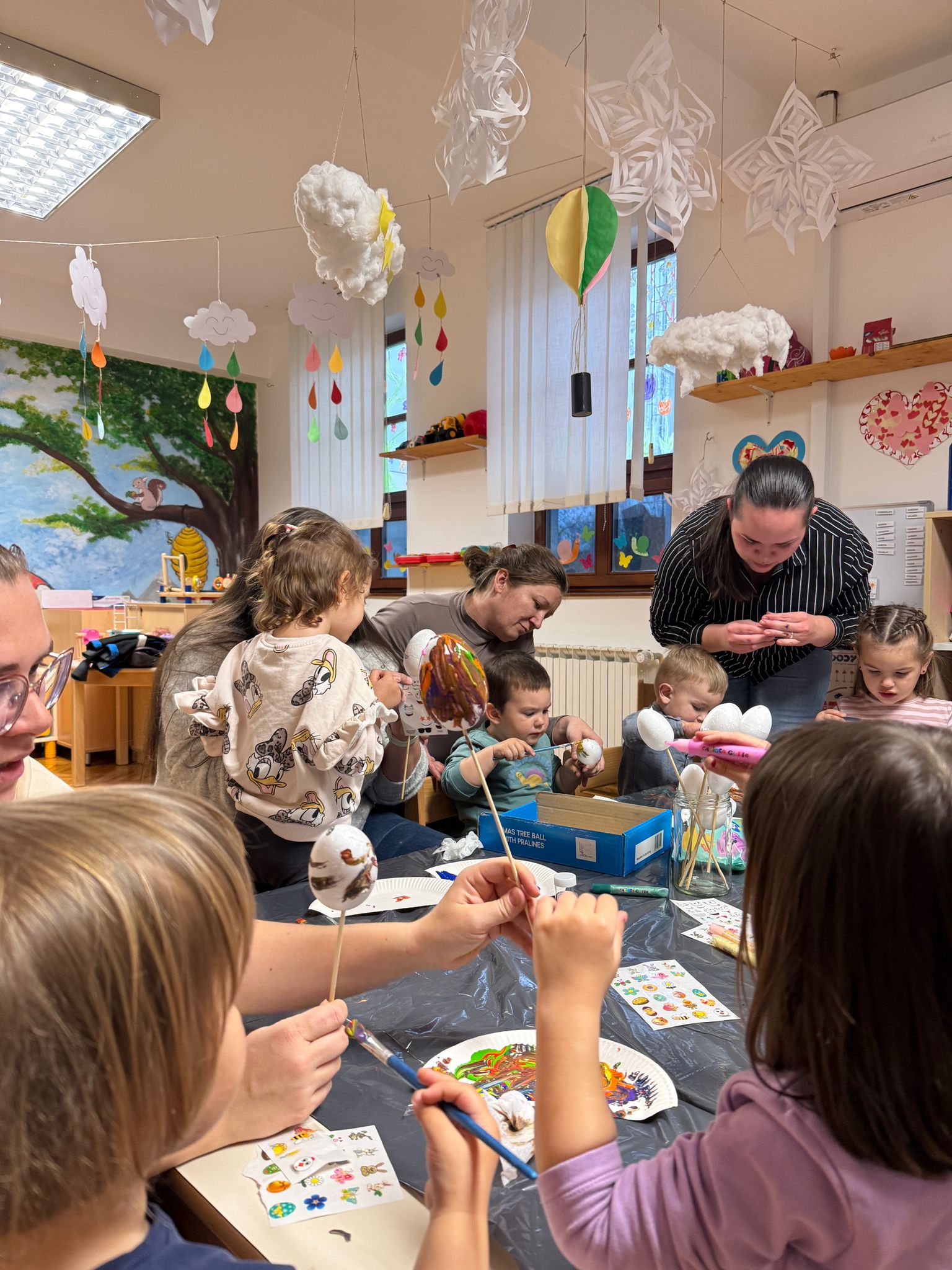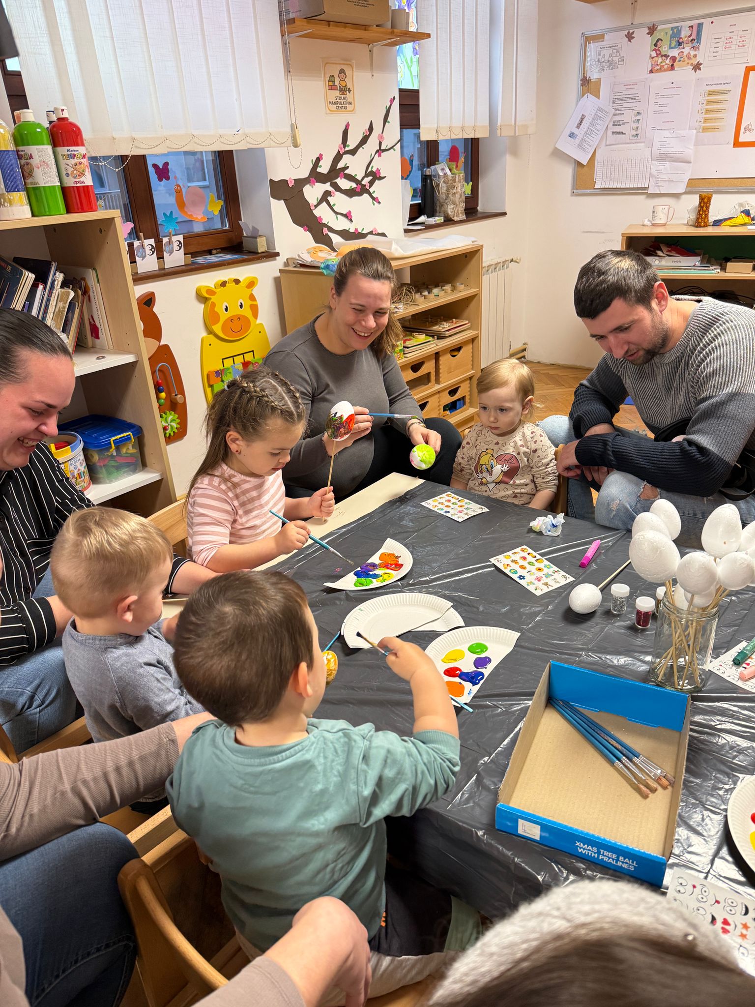 Skupina Pužići iz Jasenovca je 31. ožujka organizirala veselu i kreativnu uskrsnu radionicu u kojoj su sudjelovala djeca zajedno sa svojim roditeljima, uz vodstvo odgojiteljica Blaženke i Gordane. U ugodnom i poticajnom okruženju svi sudionici su se uključili u razne aktivnosti, a posebno ih je razveselilo bojanje uskrsnih jaja. Jaja su ukrašavali naljepnicama, šljokicama i raznim drugim ukrasima, pri čemu su djeca mogla izraziti svoju maštu i kreativnost. Osim toga, izrađivali su i prigodne uskrsne dekoracije te su kroz zajednički rad razvijali suradnju, strpljenje i osjećaj zajedništva. Radionica je protekla u veselom i opuštenom ozračju, ispunjenom smijehom, bojama i blagdanskim duhom.