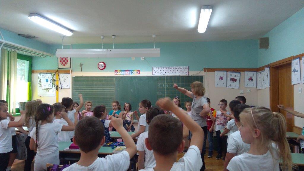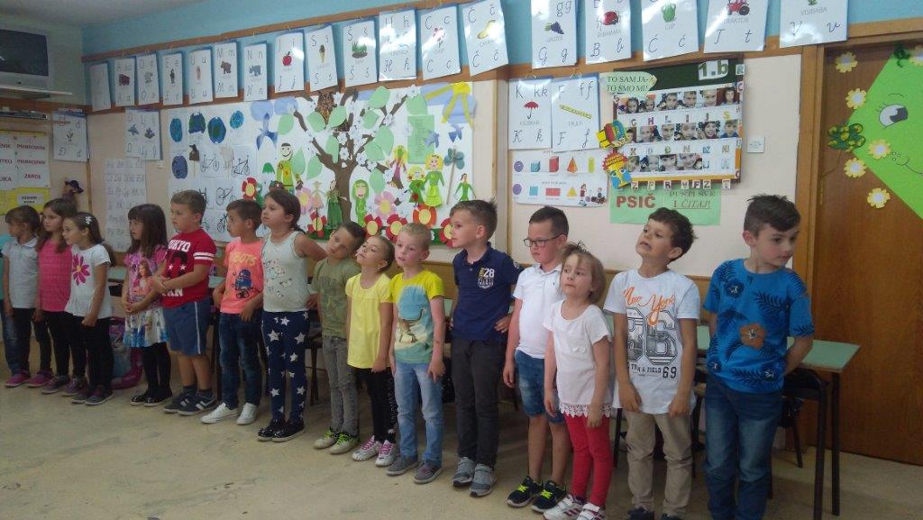 Buduće prvašiće je dočekala socijalna pedagoginja koja im je pokazala njihove buduće učionice i ostali prostor škole, a zatim ih uvela u razrede ovogodišnjih prvašića. Grupa A se družila s 1. B razredom i učiteljicom Jasnom, a grupe B i C s 1. C i učiteljicom Snježanom. Prvašići su našim mališanima pokazali bilježnice, udžbenike i ostali pribor, pjevali, recitirali, plesali, iznijeli svoja iskustva, te razgovarali o svemu što rade u školi.